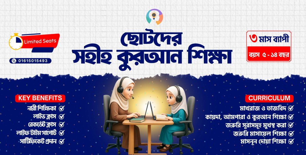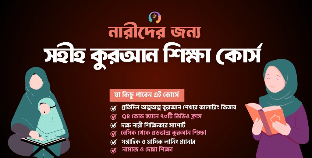ঘরে বসেই সহীহ-শুদ্ধভাবে কুরআন শিখুন আমাদের এই বিশেষ কিতাব ও ভিডিও গাইডলাইনর মাধ্যমে! সময়ের অভাবে বা লজ্জায় কুরআন শেখা হয়ে উঠছে না? আমাদের "নারীদের...